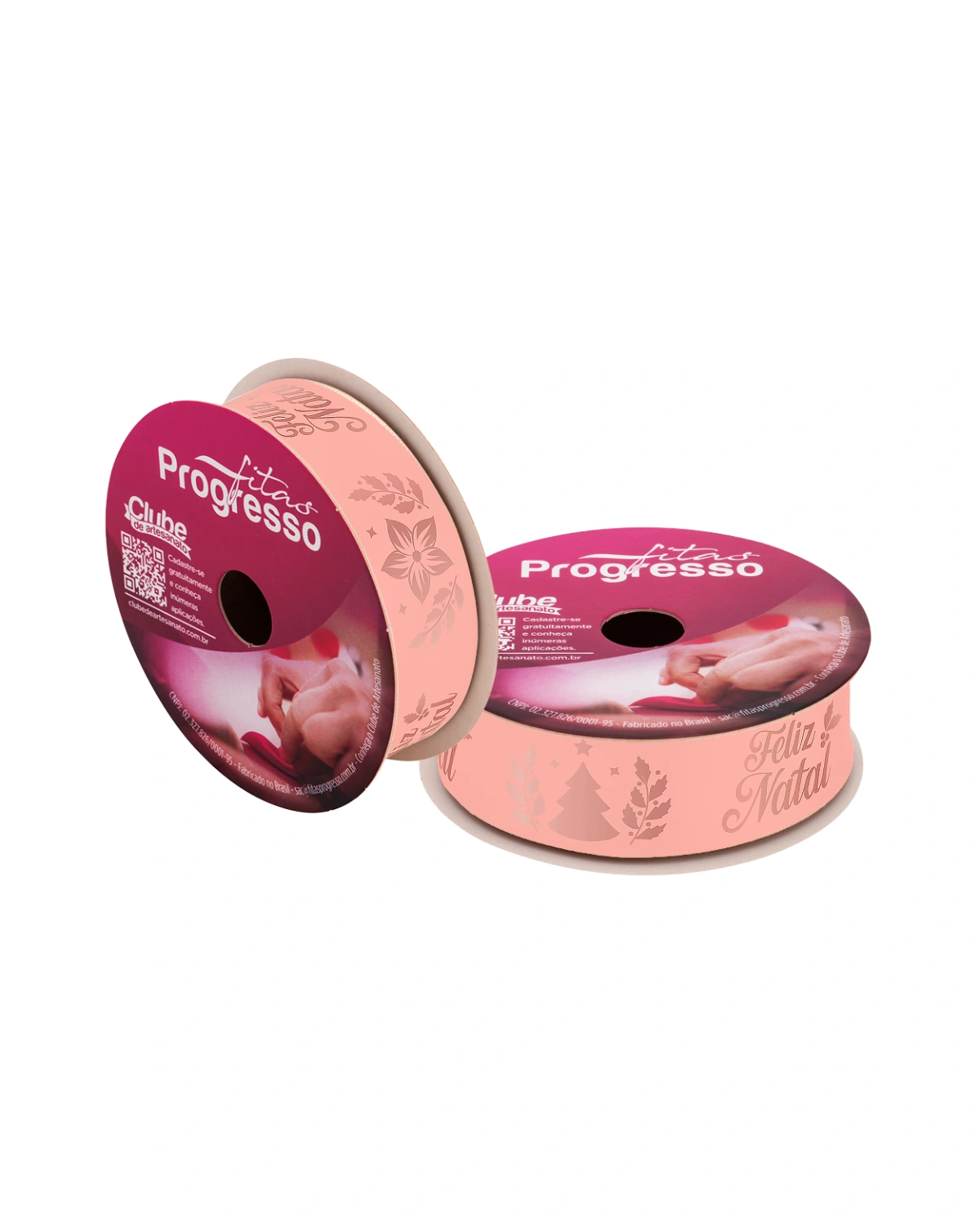 ## Qualidade Garantida Fitas Progresso Ao escolher a Fita de Cetim Feliz Natal 22mm Rosa Fitas Progresso – Rolo 10m, você adquire um produto 100% poliéster com brilho acetinado impecável. A marca Progresso é referência nacional em durabilidade, garantindo que a estampa temática permaneça nítida durante todo o manuseio. A referência ECF 005H destaca-se pela maciez da fita, facilitando a confecção de nós e acabamentos refinados que não desmancham, garantindo um resultado profissional em cada peça.