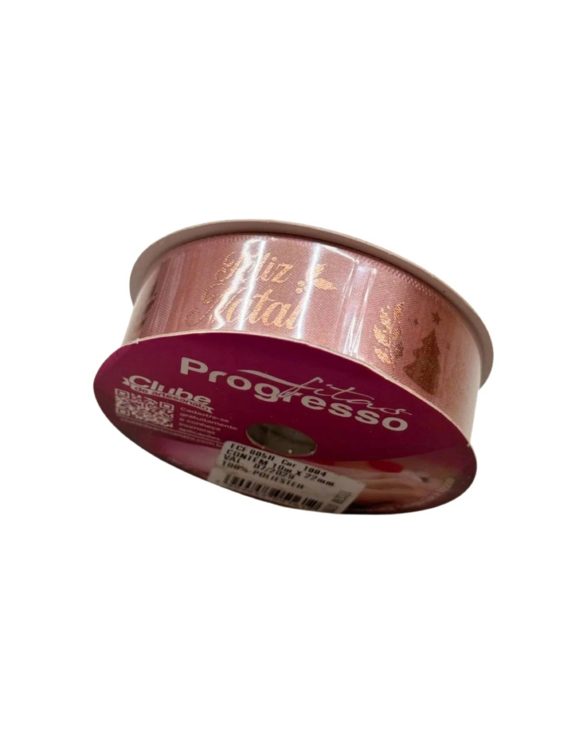 Embalagens Especiais: Valorize seus produtos com a Fita de Cetim Feliz Natal 22mm Rosa Fitas Progresso.
