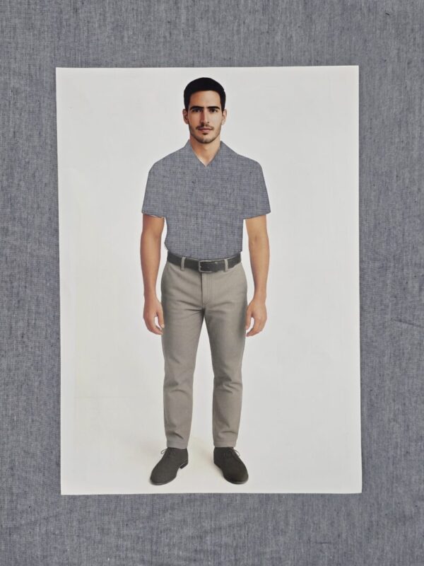 A Variante 5 se destaca pela combinação harmoniosa de fibras, resultando em um tecido macio, resistente e de visual refinado — ideal para peças que precisam unir conforto e estética.