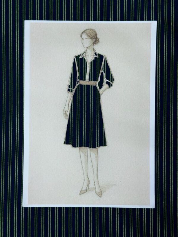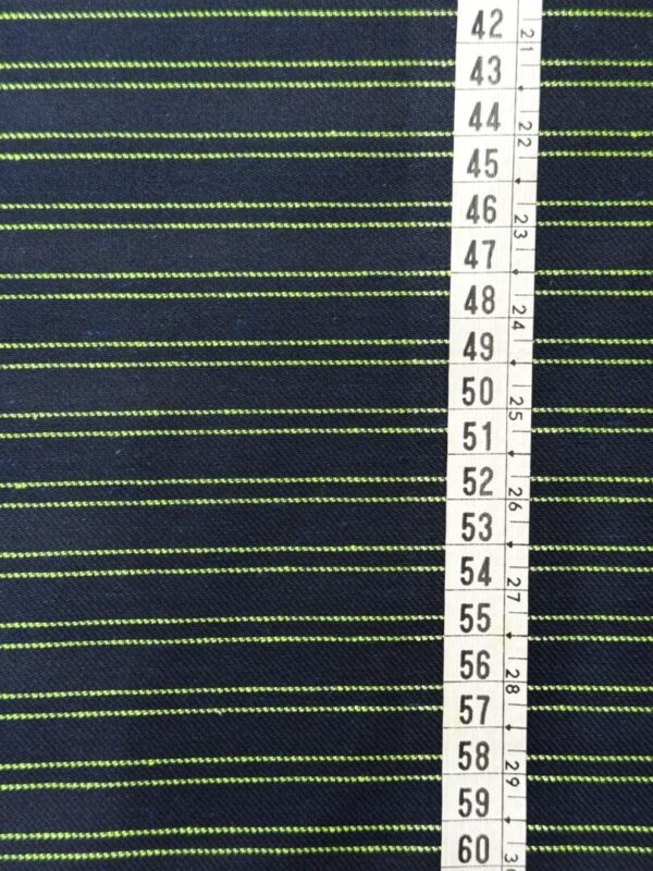 O Tecido Belém Variante 2 apresenta um listrado moderno em azul marinho com listras em verde-limão fluorescente, criando contraste vibrante e atual. Sua estrutura encorpada garante firmeza e caimento estruturado, enquanto a mistura de algodão e poliéster oferece equilíbrio entre conforto, resistência e praticidade.
