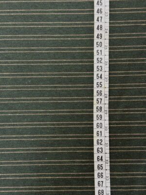 O Tecido Belém Variante 4 é ecológico e sustentável, unindo o conforto do algodão com a resistência do poliéster. Seu fundo verde profundo com listras finas em tom claro proporciona um visual clássico e sofisticado. Com textura encorpada e caimento estruturado, é ideal para peças que exigem durabilidade e elegância.