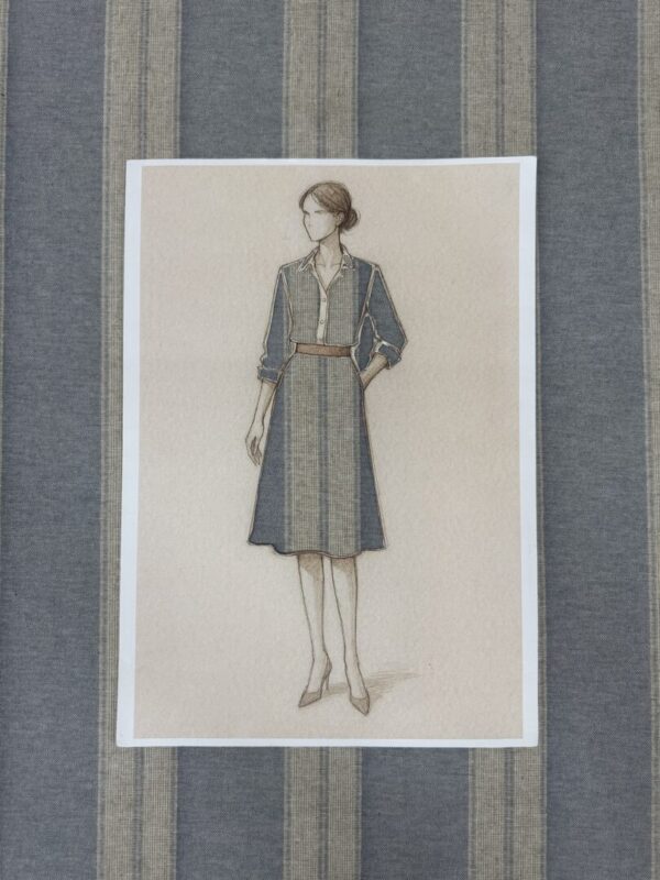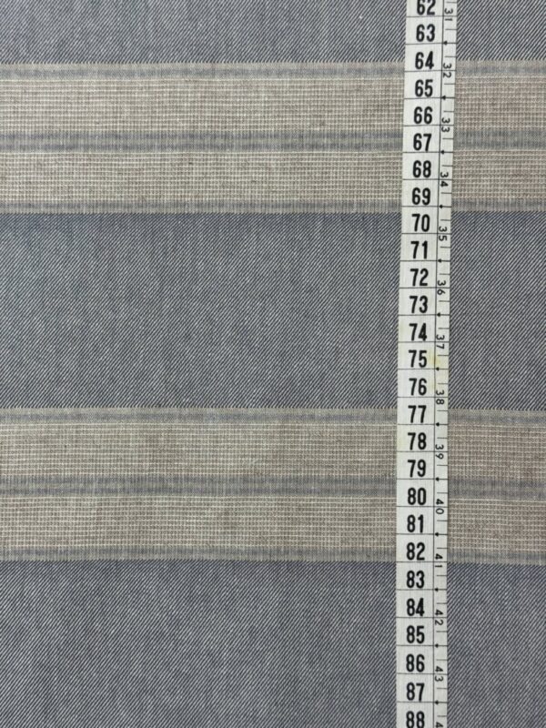 O Tecido Berlim Variante 4 apresenta um listrado sofisticado em cinza médio com listras largas em bege claro, criando um contraste neutro e elegante. Sua estrutura encorpada garante firmeza sem perder a leveza, enquanto a combinação de algodão, viscose e linho proporciona conforto, resistência e um toque natural.