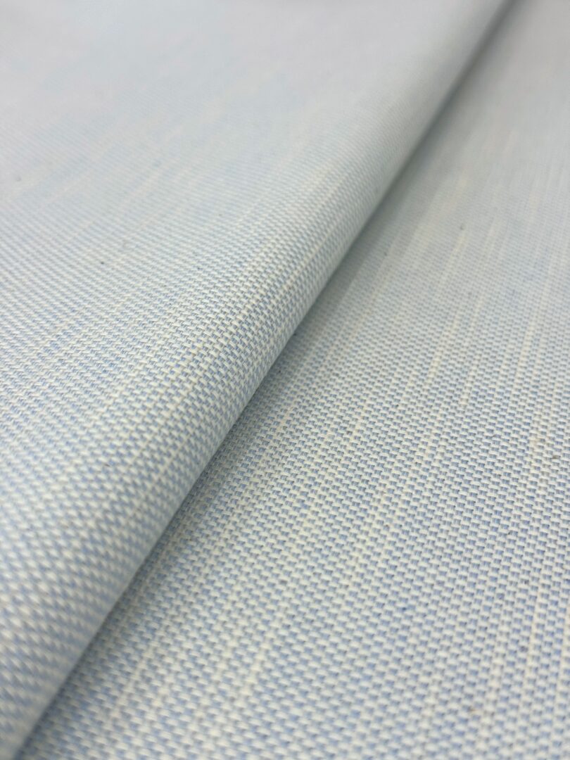 O Dresden V01 é um tecido leve, fresco e extremamente confortável, com efeito mesclado suave que combina tons de azul claro com branco, criando um visual limpo, moderno e muito elegante. Sua trama bem definida proporciona resistência sem perder a delicadeza no caimento.