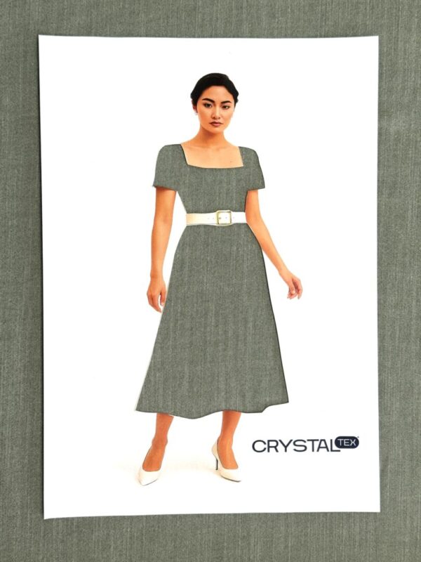 O Tecido Duna V5 possui um tom verde elegante, com leve brilho e textura fina que garantem sofisticação em qualquer peça. Sua composição 100% viscose proporciona toque macio, excelente caimento e conforto térmico, sendo ideal para confecções refinadas.