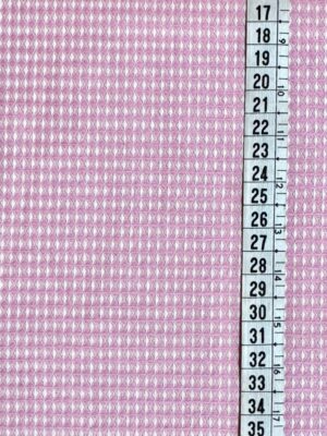 O Tecido Elizabeth Variante 9 se destaca pelo tom de rosa suave combinado ao branco, resultando em um visual delicado e contemporâneo. Seu padrão geométrico cria textura e movimento, valorizando qualquer criação. Produzido em algodão puro, oferece toque macio e respirabilidade natural. Um diferencial importante é o comportamento após a lavagem: o tecido encolhe levemente e os fios se abrem, revelando uma textura única e ainda mais charmosa.