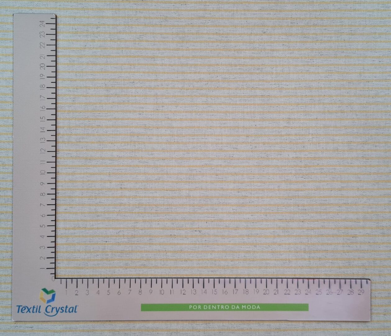 O Purus Variante 2 apresenta uma padronagem listrada fina e elegante, trazendo um visual leve, clean e sofisticado. Sua mistura de fibras naturais proporciona maciez, caimento suave e um toque levemente rústico — resultado do linho presente na composição.