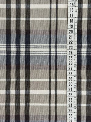 O Roma Xadrez Variante 4 apresenta uma padronagem clássica em tons de cinza, bege e azul petróleo, com linhas marcadas que formam um xadrez elegante e equilibrado. O tecido é totalmente em algodão, garantindo um toque macio, excelente respirabilidade e conforto ao vestir.
