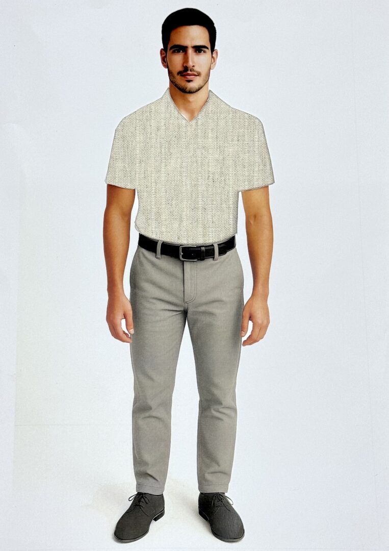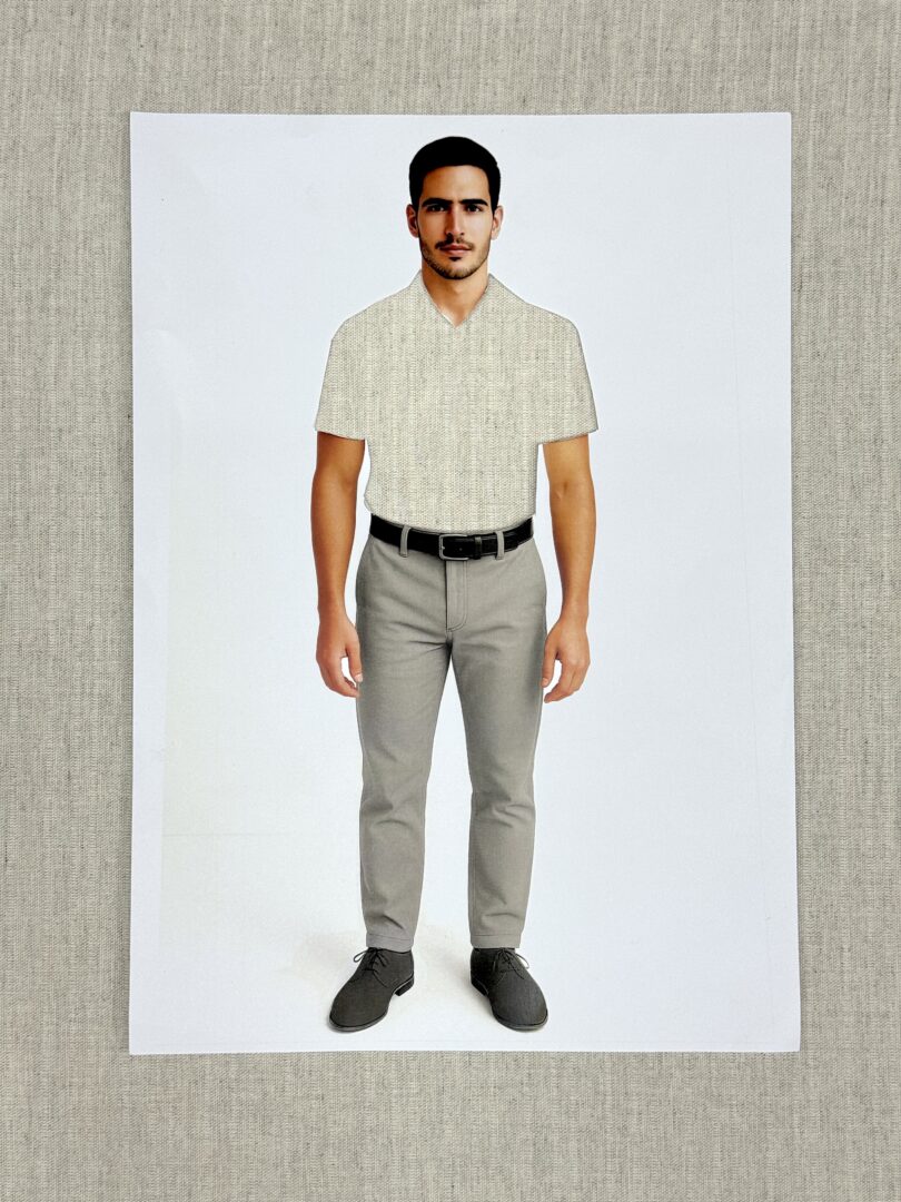 A Variante 2 se destaca pelo equilíbrio entre o algodão macio e o linho rústico, criando um visual autêntico, moderno e levemente artesanal — ideal para quem busca naturalidade com estilo.