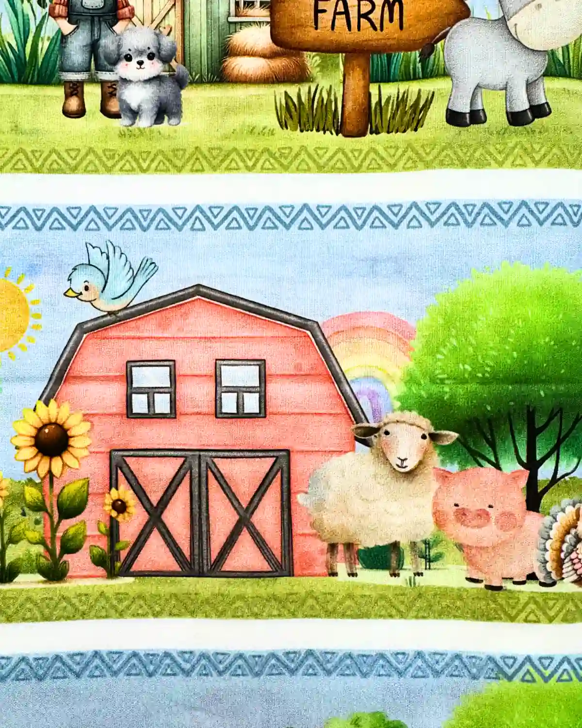 O Tecido Tricoline Barrado Fazendinha (94364/001D) é o material definitivo para artesãos que buscam exclusividade e perfeição em projetos infantis. Por ser um tecido de algodão digital, a nitidez dos desenhos e a vivacidade das cores superam qualquer tricoline convencional, transformando panos de prato e enxovais em peças de luxo.