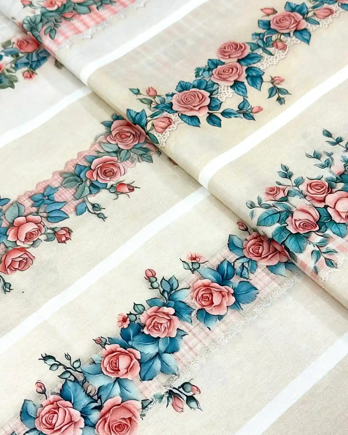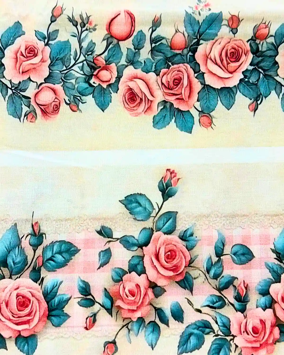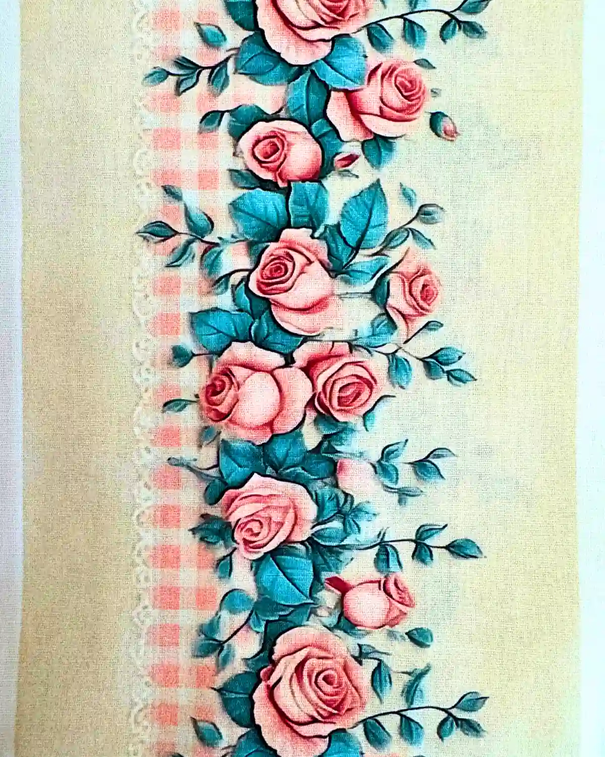 O Tecido Tricoline Barrado Rosas (94384/001D) da Fabricart é a escolha definitiva para quem busca um design romântico e alta qualidade têxtil. Esta estampa digital premium apresenta rosas em tons clássicos integradas a um barrado que simula renda e xadrez, proporcionando um acabamento artesanal sofisticado e pronto para uso.