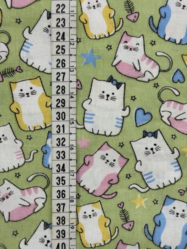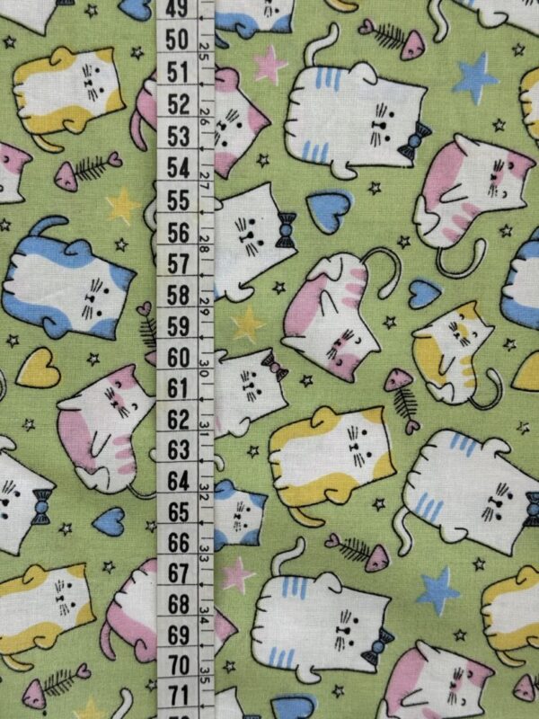 Produto: Tecido Tricoline Estampado Gatinhos Verde