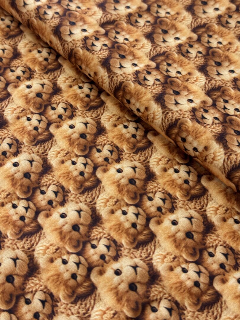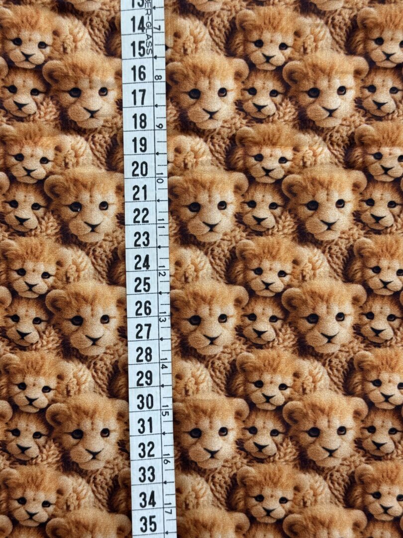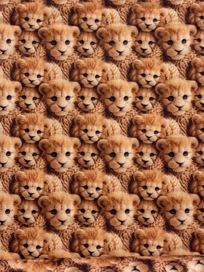 Tecido tricoline com estampa de leõezinhos em estilo realista, em tons de caramelo e marrom, criando um visual aconchegante e cheio de personalidade. A padronagem contínua transmite delicadeza e charme, perfeita para projetos que buscam um toque lúdico e infantil.