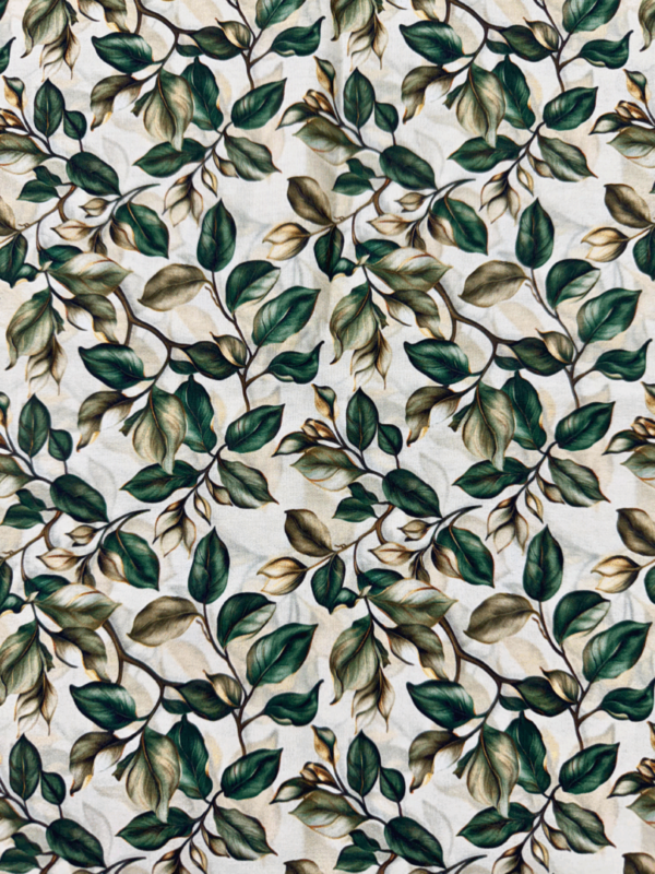 - Produto: Tecido Tricoline Digital Folhas Lush Creme