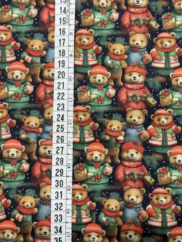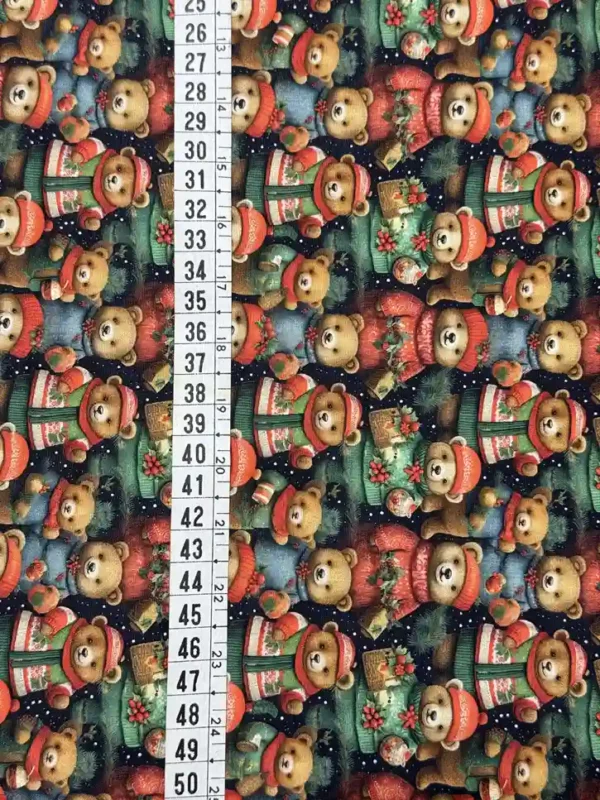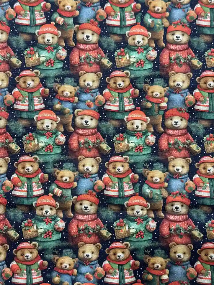 Estampa Encantadora: Design detalhado com ursinhos em estilo “country” que trazem um toque de doçura e nostalgia às festividades.